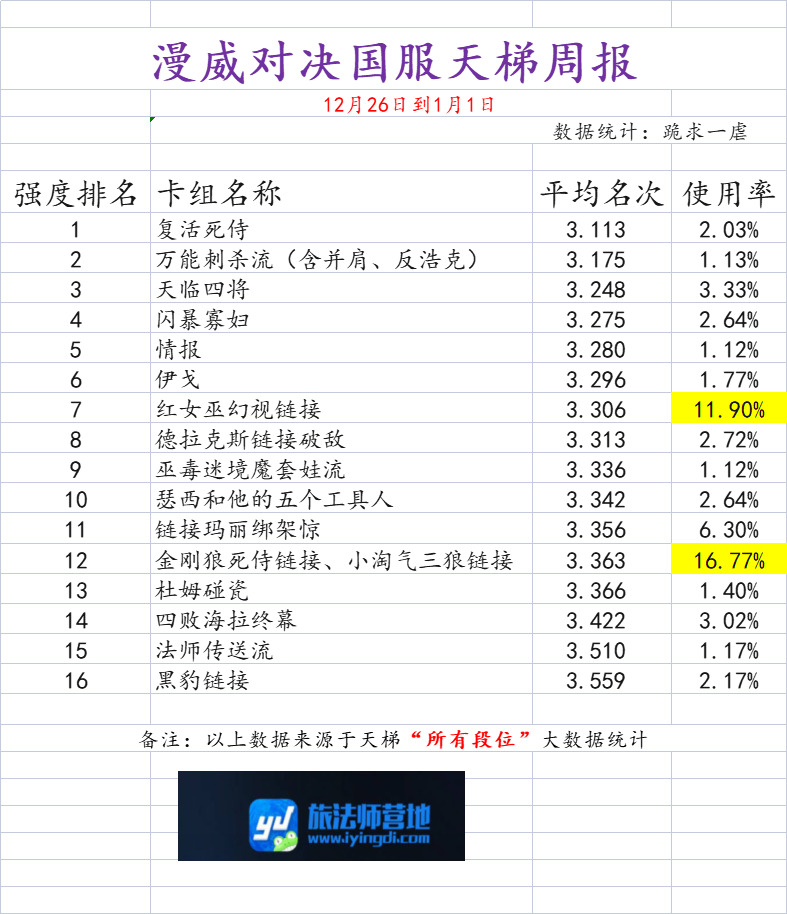 以下数据为天梯“所有段位“大数据统计: