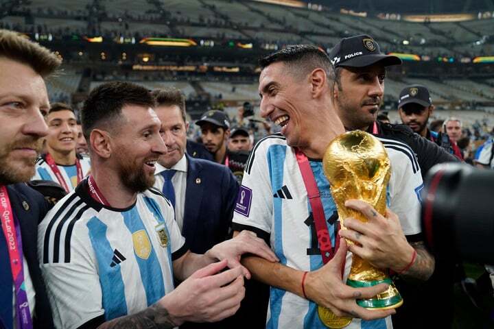 费尔南多-德拉奥登是《号角报》和《奥莱报》的驻卡塔尔的摄影师。在决赛两天后,他在社媒上发布了迪马利亚同梅西查看奖杯的合照,一位好奇的用户询问到:“你听到他们在说什么吗?”