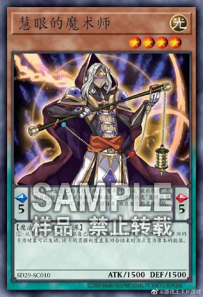 游戏王 决斗怪兽 主题卡组:灵摆巨匠(简体中文版),2023年2月4日发售!用「异色眼」抓住胜利吧!灵摆召唤的可能性无限大!本次为大家带来的预览卡片为主题卡组:灵摆巨匠收录卡片,『慧眼的魔术师』!