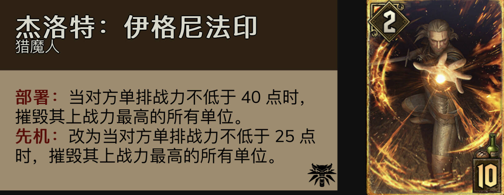 在控制金卡上我选择了伊格尼、蟾蜍王子、多瑞加雷、夜之女王。他们都是很优秀的怪兽控制卡,在绝大多数对局中,这些控制已经够用。其中伊格尼的卡位可以换成利维亚的杰洛特,天梯的环境中这两张卡都有优秀的发挥,具体而言就是伊格尼在打岛时可以烧索佛但是会比杰洛特容易白,在对阵无错点能力的卡组时我们可以通过流血修点让伊格尼烧到多个单位。