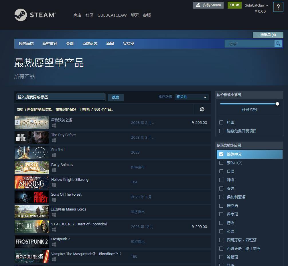 根据Steam商城官网页面信息显示,开放世界冒险游戏《霍格沃茨之遗》现已登顶最热愿望单产品。