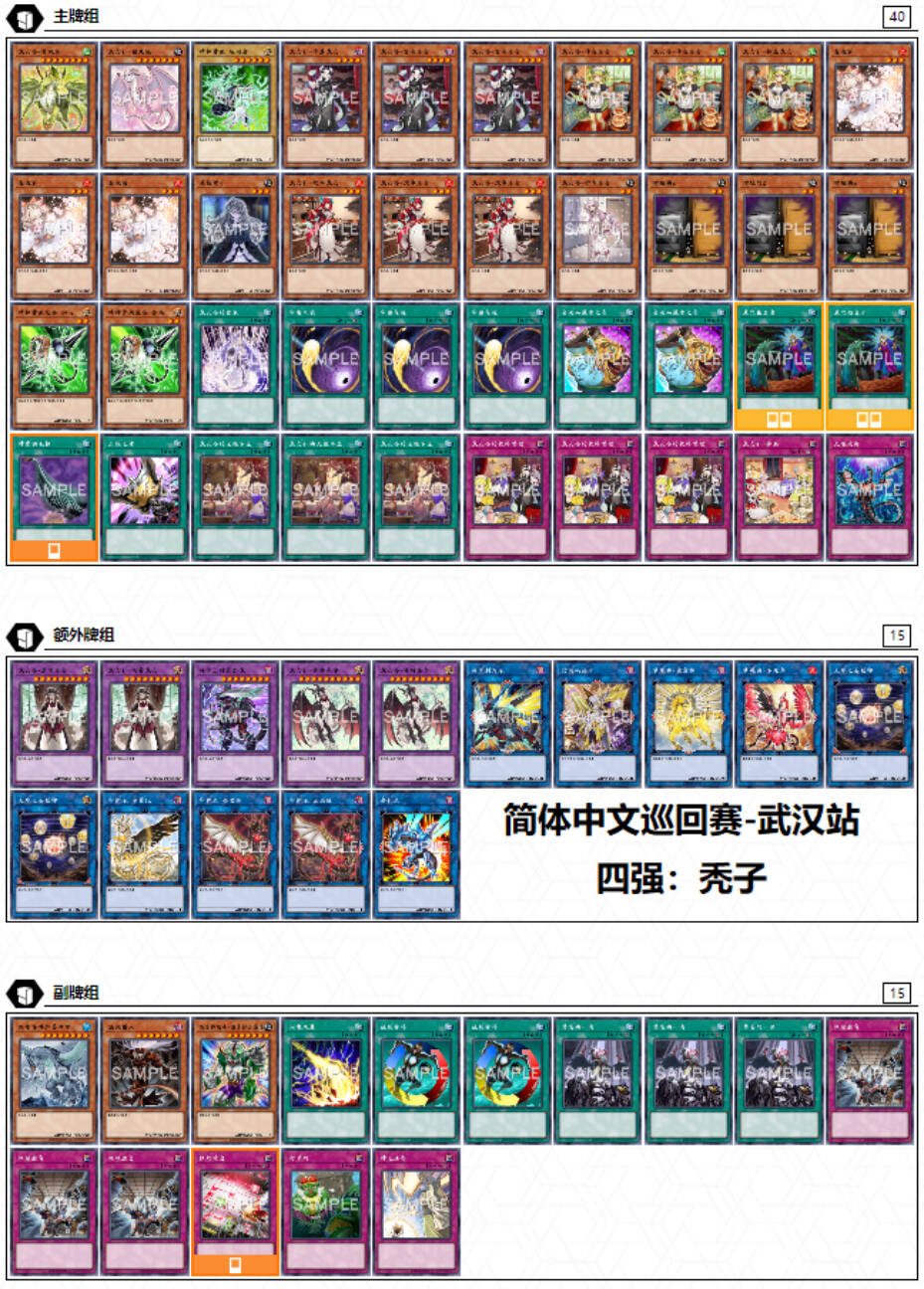 根据微博 @游戏王卡片游戏 的微博内容和我们的收集整理,本次巡回赛的参赛卡组分布如下:
