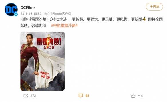 继漫威两部新片国内定档后,华纳DC方面也有一部超级英雄电影宣布即将在国内上映——DC新片《雷霆沙赞2》(雷霆沙赞!众神之怒)确认引进国内院线!上映日期待定。