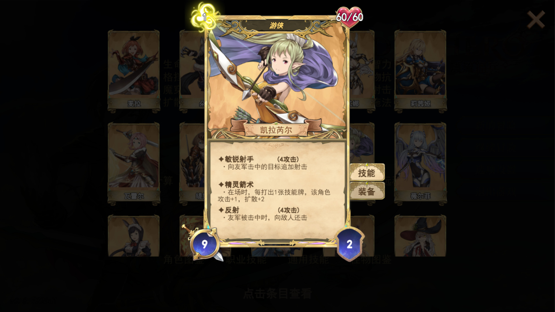 | 属性 | 生命值60 / 攻击力9 / 防御值2 / 行动力费用1 |