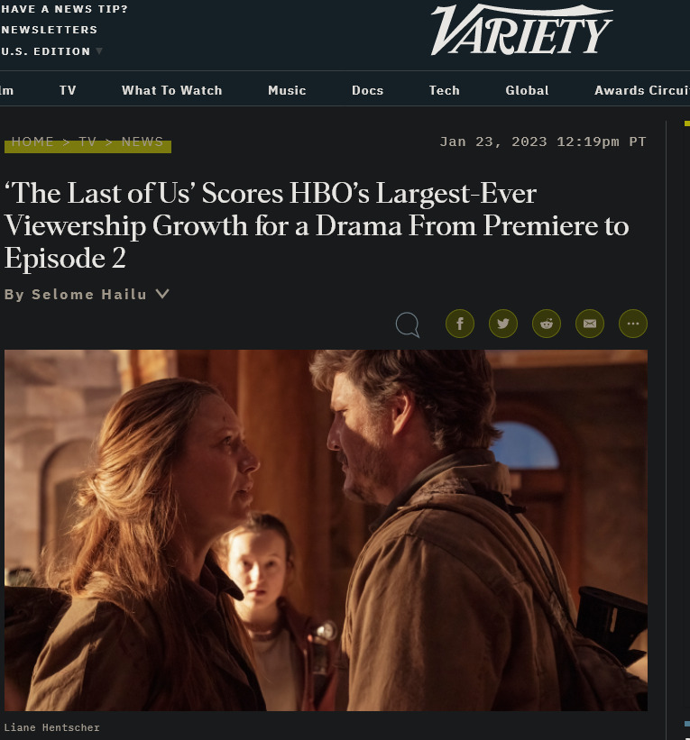 继 HBO 上周宣布《最后的生还者》美剧是其十多年来首播收视率第二的剧集后,该电视台目前宣布,第二集的观众人数增长创下了 HBO 原创剧集史上最高的纪录。