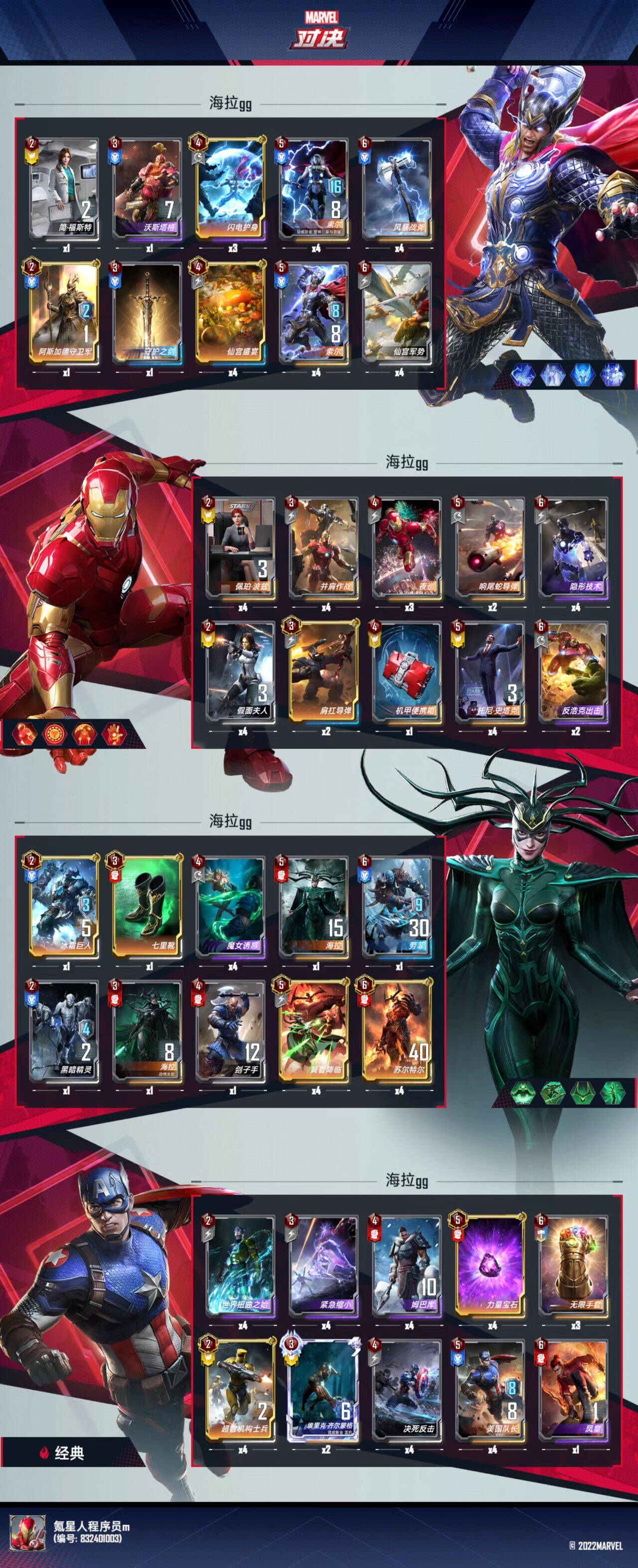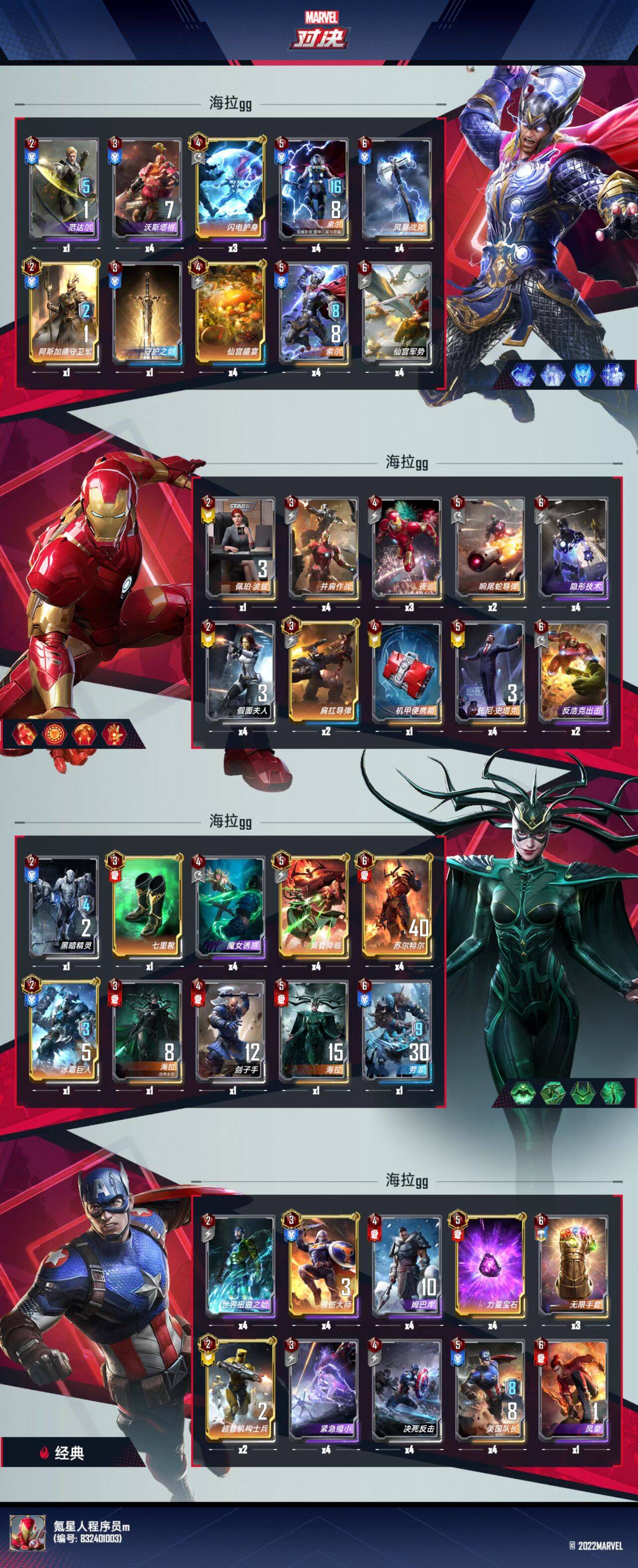 今天带来一套能吊锤海拉的卡组,这套卡组为三轴卡组,(1双索尔叠甲,2双锁妇联叠甲,3海拉终幕),目前战绩为23局20胜13鸡,胜率90%左右,吃鸡率在57%。可以说是一套非常强力的卡组,而且一点不怕海拉终幕,和反浩克。在文章最后我会附上相应的对战视频。
