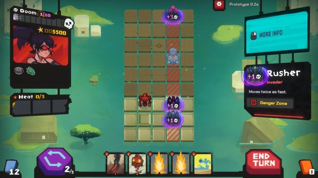 而生命值则由另一个新设定“末日”所取代。一旦敌人移动到了场地下三行的“危险区域”,那么玩家就会获得不同数量的“末日值”,一旦这个数超过上限,游戏也就宣告结束。