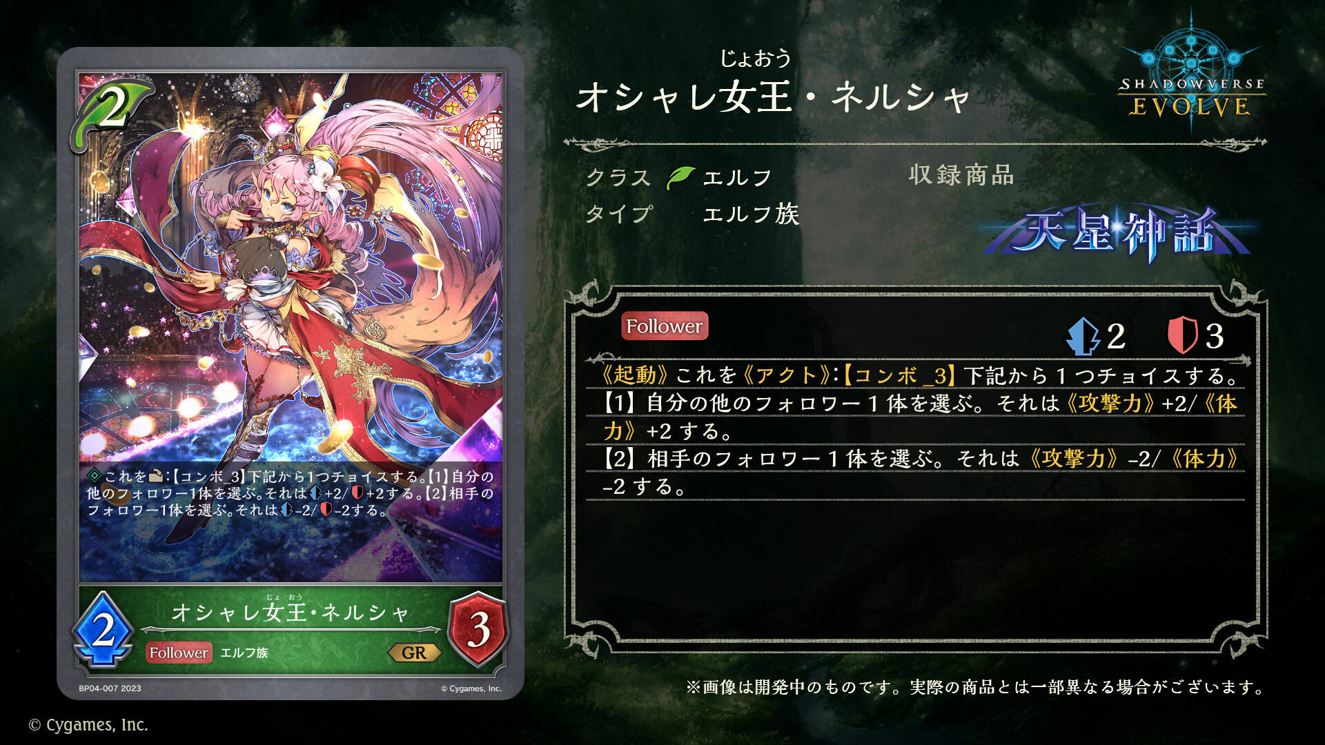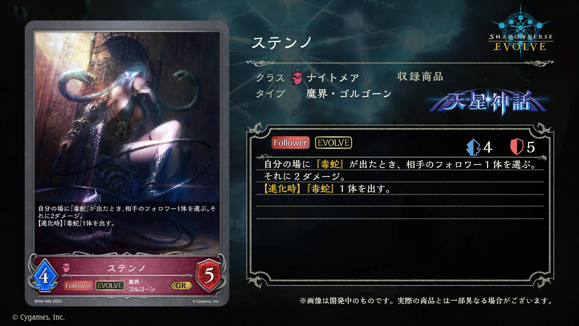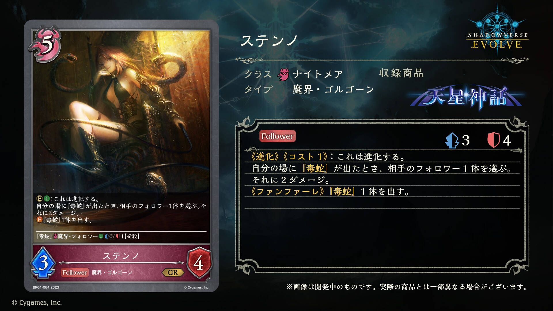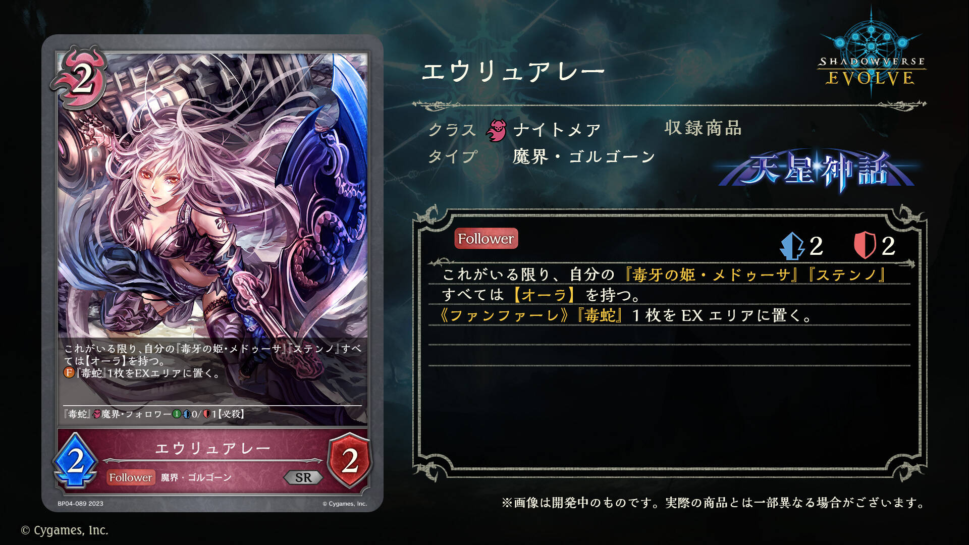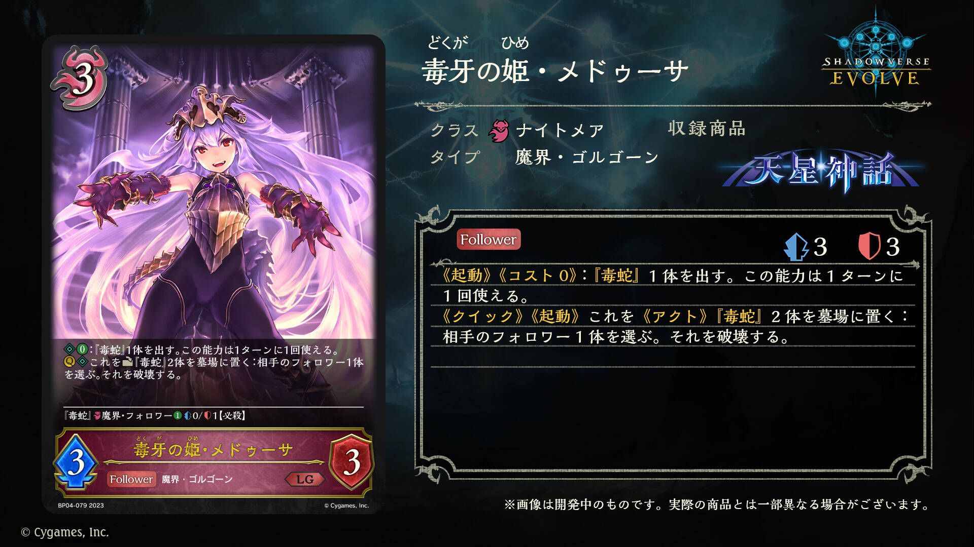 只要这张牌在战场上,自己的所有“毒牙公主·美杜莎”与“斯忒诺”均获得【灵气】。