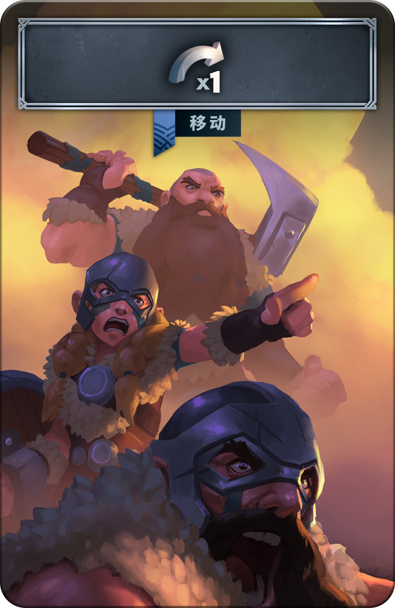 行动阶段就是出牌了,刚才选好的牌现在可以打出产生效果。在《北境之地:人迹罕至》用牌有两大方式,一种是直白地按照牌上标注的效果来结算生效,比如派遣你的部落成员去地图上占地盘,又或者招募、移动、建造、探索、战斗等等(具体请游戏时详见规则书);另一种则是通过使用“知识”来对手牌或牌库进行调整,比如弃掉当前1张牌再抓1张新的,或者把1张手牌移出游戏再抓2张新的,又或是升级卡牌。当然你也可以选择“跳过”其实就是结束自己本回合的行动阶段,把所有打出和手中没用掉的牌都置入弃牌区,然后从每回合开始前翻出的可供玩家挑选的若干张待选**卡中挑一张(具体**卡数量和玩家人数挂钩),扣放到自己**卡牌库顶部,换句话说如果没有意外,下个回合这张牌你一定会抓到手中。