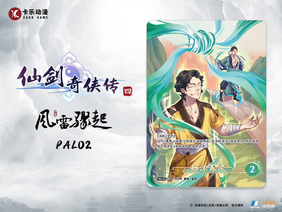 冰丝玉缕簇青红,已逗花梢一信风。《仙剑奇侠传四》集换式卡牌游戏第二弹—风雷骤起中卡牌编号017/ 038的角色卡—“如沐春风”。