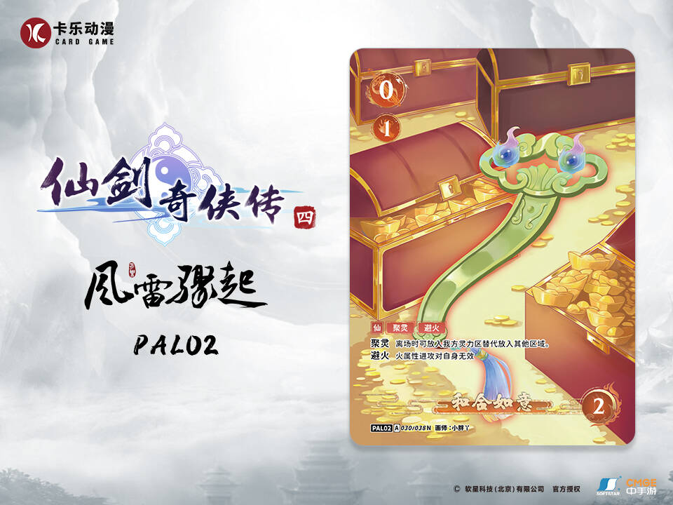 火树银花元夕夜,彩灯万盏熠霞流。《仙剑奇侠传四》集换式卡牌游戏第二弹—风雷骤起中卡牌编号030/ 038的角色卡—“和合如意”。