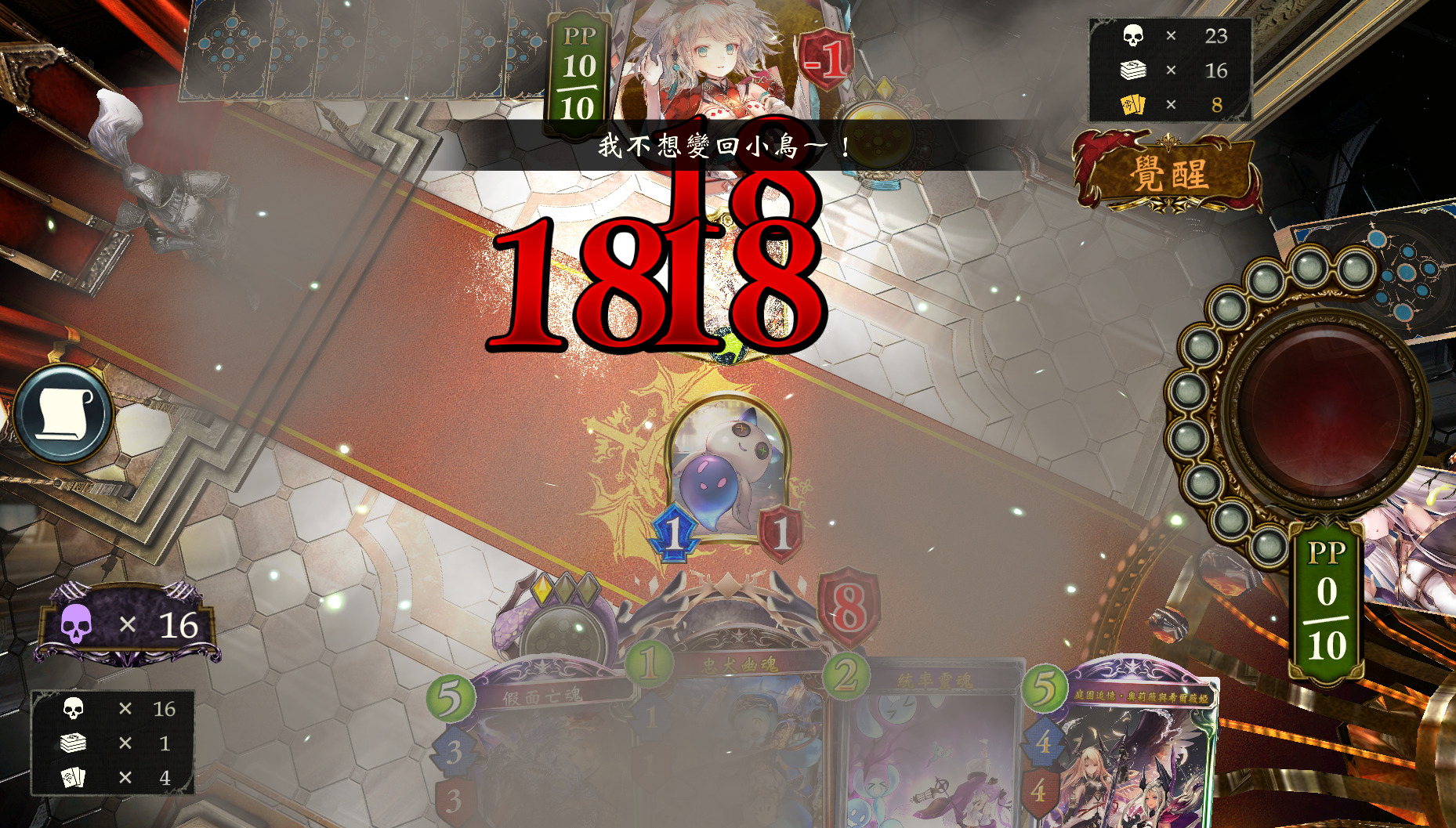 无法斩杀的话,根据对手回血、解场能力来选择打法。如果对手回血能力不足,或难以兼顾回血和解场,可以尝试分段斩杀,激进抢血后在下回合通过爆能泯灭等方式补刀。如果对手回血、解场能力强,或自己手中没有后续伤害,优先争夺场面,或继续使用假面,或爆能死灵嘉年华复活假面,为下回合爆发做准备。