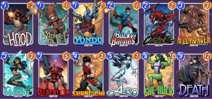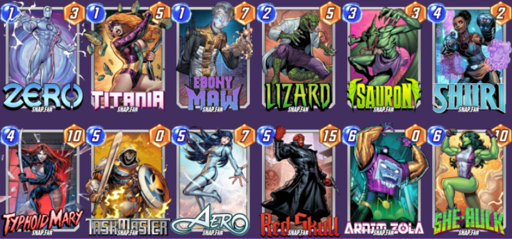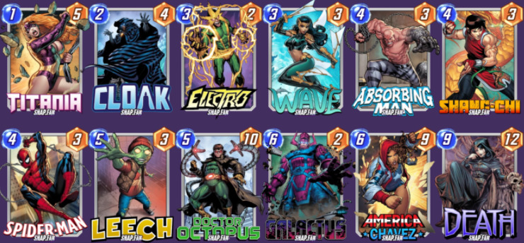 这套牌在twitch上热度不是一般的高,并帮助玩家たれお在日本Snap社区赛中夺得冠军,所以带来一种强度爆炸的错觉。然而主播是主播,卡组来到普罗大众手中就体现出操作难度极大的硬缺点。有灭霸的小伙伴欢迎尝试,除真爱党外不推荐代币高追(有这钱留给【吞星】显然更合适)。温馨提示:游玩时记得打开记牌器。