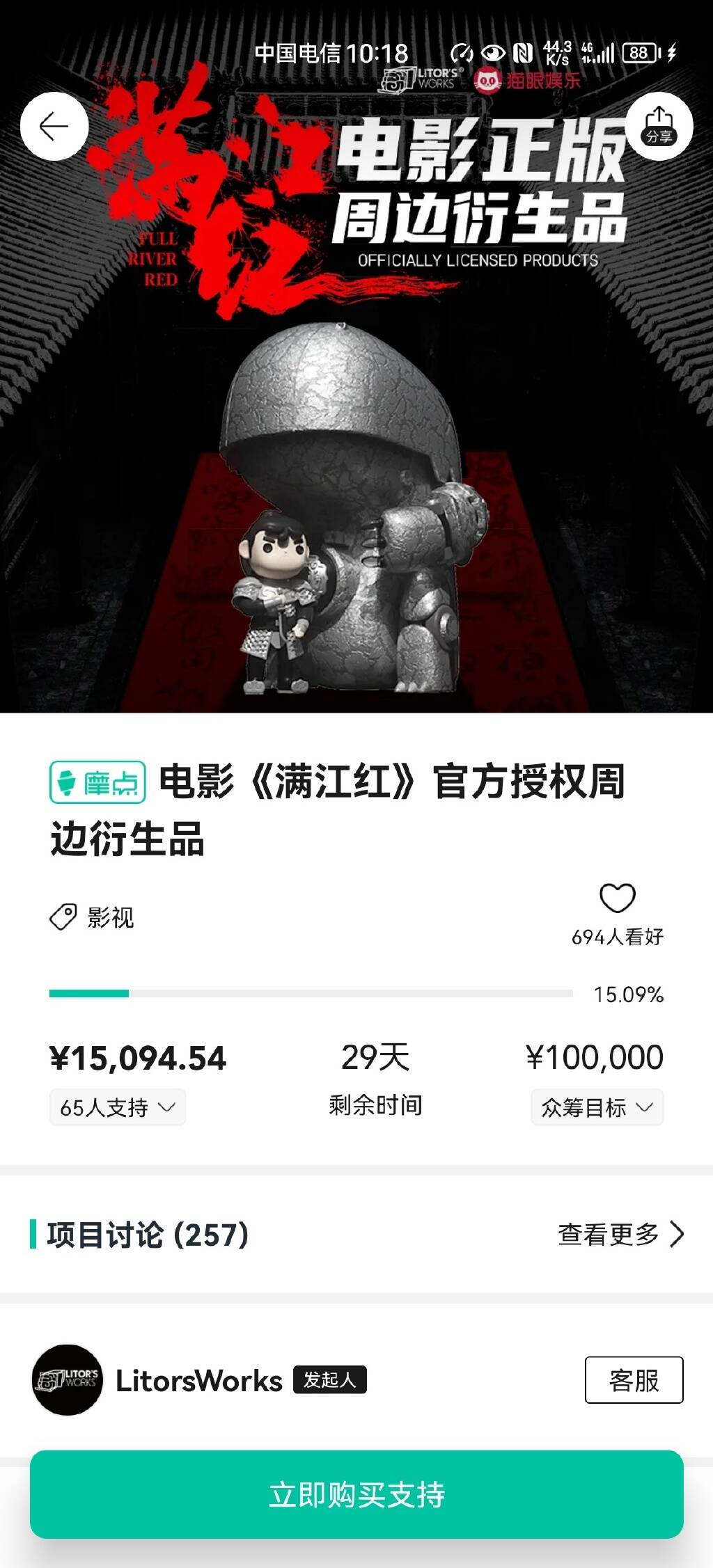 目前,电影《满江红》上线不到一天的众筹周边活动就已下架,同时还发布下架声明: