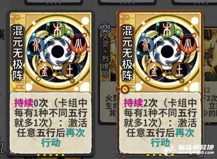 混元无极阵,配合上面那张五行流转,每次激活印记时都会再次行动,及一回合使用两次流转系牌的效果。