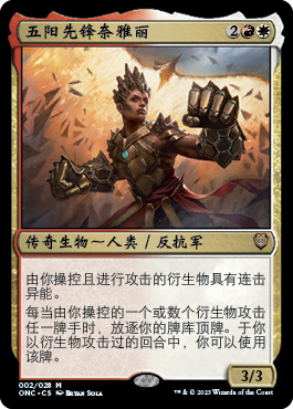 1张宽画稀有牌——我们精选了ONE轮抽补充包中的29种稀有牌,对它们进行了宽画处理。这些牌在ONE补充包里没有其他特殊处理或特色牌框,宽画处理版本仅限聚珍补充包。