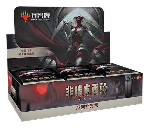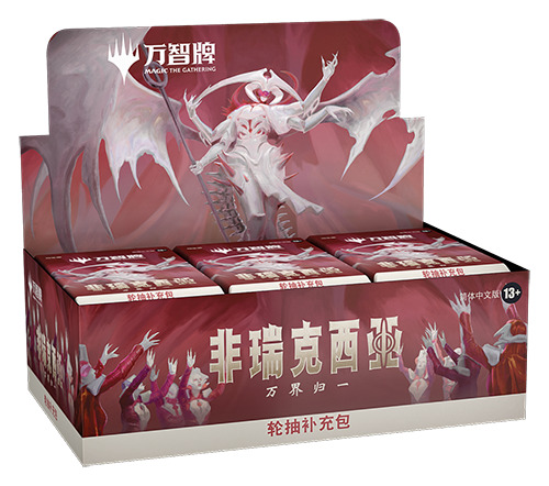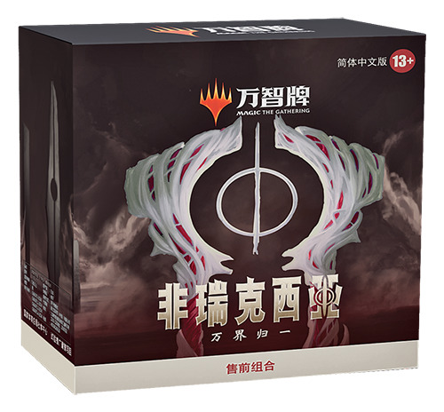 非瑞克西亚:万界归一售前组合最适合用来参加2月3日开始的店内售前赛,ONE售前组合内含六包轮抽补充包和一些额外东西来“完化”你的游戏体验,其中包含一张带闪戳记的稀有或秘稀牌,一张《万智牌:竞技场》代码卡(仅部分地区可用),一个牌盒和一个Spindown生命计数器。