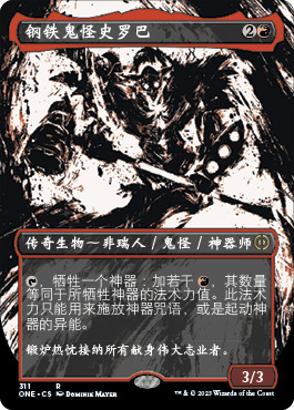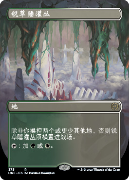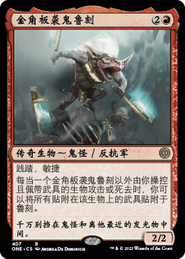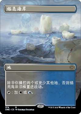 宽画处理——让每个系列的稀有或秘稀牌都拥有特殊牌张处理是我们一直以来的目标。对于没有以上牌张处理的牌,我们采用宽画处理来展现精美的插画。ONE系列以下牌有宽画处理:主系列中的29种稀有牌、速战补充包中的5种全新稀有牌以及新加入ONC指挥官套牌的稀有或秘稀牌。以上所有牌均可在聚珍补充包中开到,部分宽画版指挥官牌可在指挥官套牌附带的聚珍补充包尝鲜包中开到。