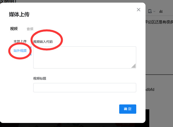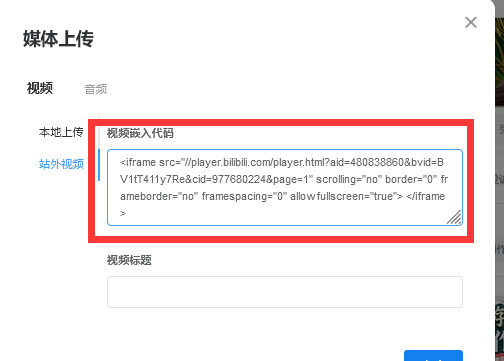 如果是本地视频直接点本地上传,如果是b站视频,选择站外视频: