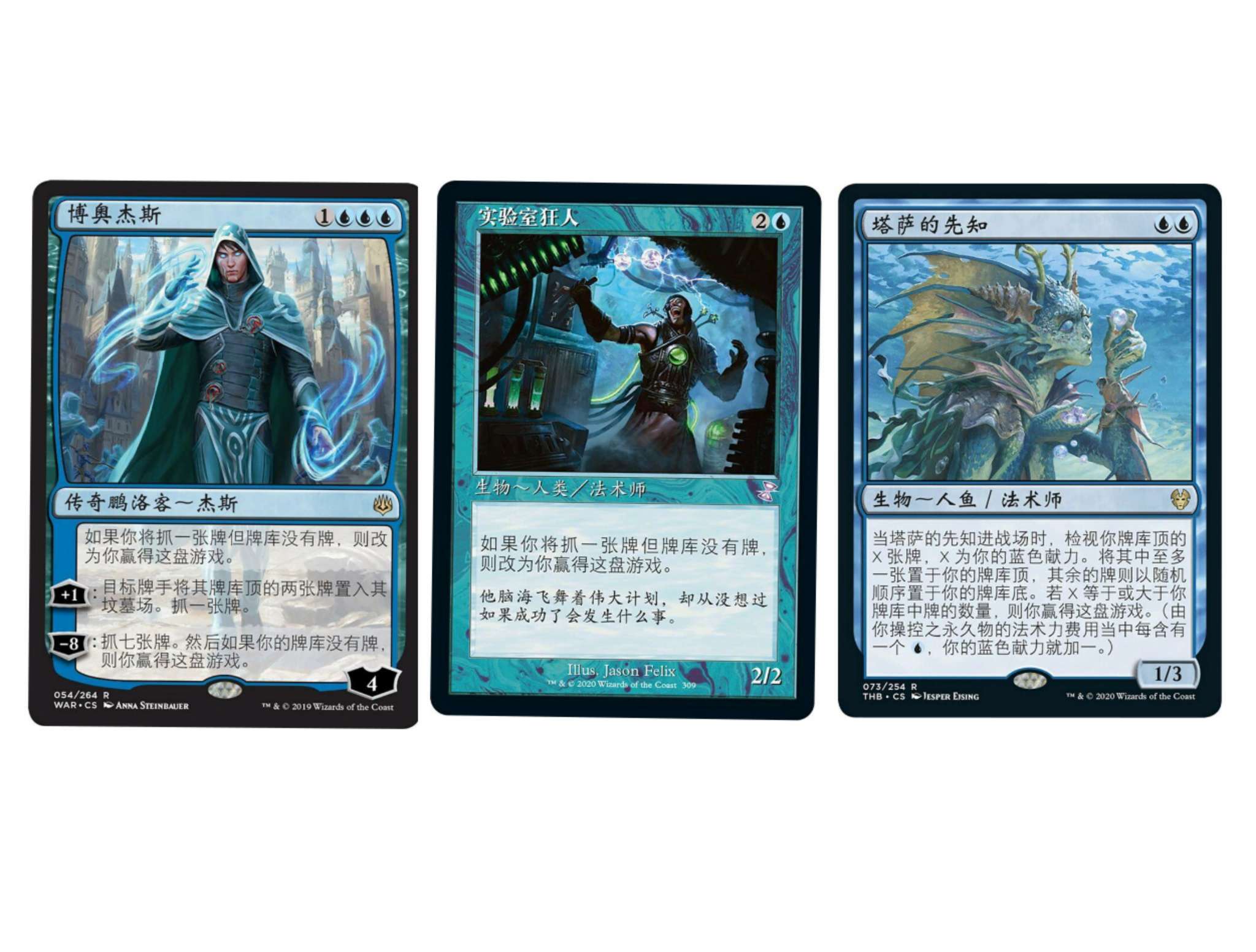 楚兰是一张三色生物牌,其中鬼谲奸诈的蓝色代表着我们这一种嬴法:摸牌。介于处男本身就是一个十分强大的过牌引擎,所以我们可以考虑琉晶研究,印鱼以及森林图书馆这样的过牌手段少带一些,甚至不带;当然,这种情况只建立在你是想要依靠摸光整个牌库的方法赢的情况,如果你打算出组合技的话,就可以带上这几种。