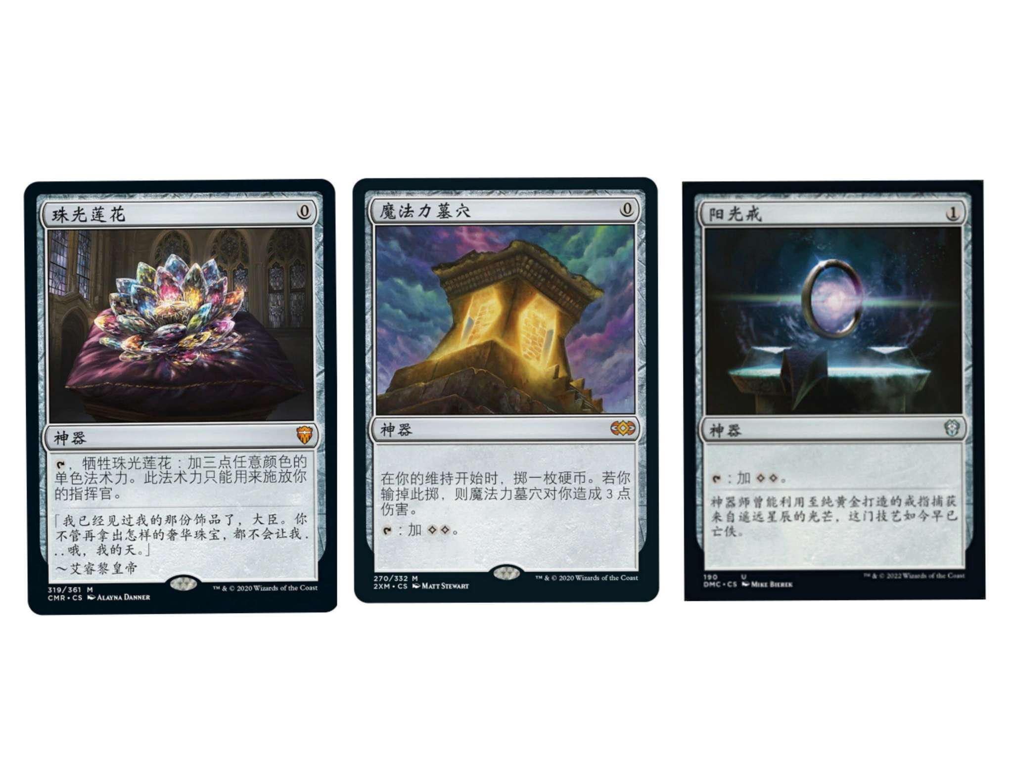 关于神器方面的选择,我认为加速神器可以少带,但是不能不带。比如说莲花,墓穴以及戒指这三个是必带的(如果有条件的话),同样的,我们也可以在100张牌的位置里为宝石洞穴留一个雅座,毕竟有概率可以宝石洞穴加莲花,再加一个地直接一回合出主将,可以提前给对手施加压力,开始制胜的手段。