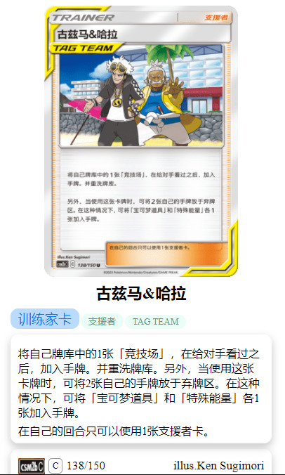 获得恶食大王的概率就来到了12/60=0.2,五分之一的概率已经不低了,但是更进一步,2.0中出现了可以用来找场地卡的古兹马&哈拉tagteam支援者: