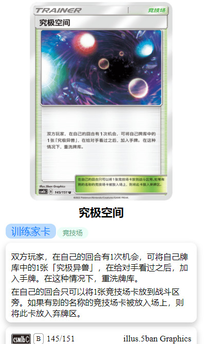 能够抓到恶食大王的概率就增大到了8/60≈0.13,而由于恶食大王是究极异兽,所以除了支援者之外,我们还可以通过究极空间场地来获得恶食大王,因此如果在卡组中加入四张究极空间(当然实际构筑中应该不会放这么多)的话:
