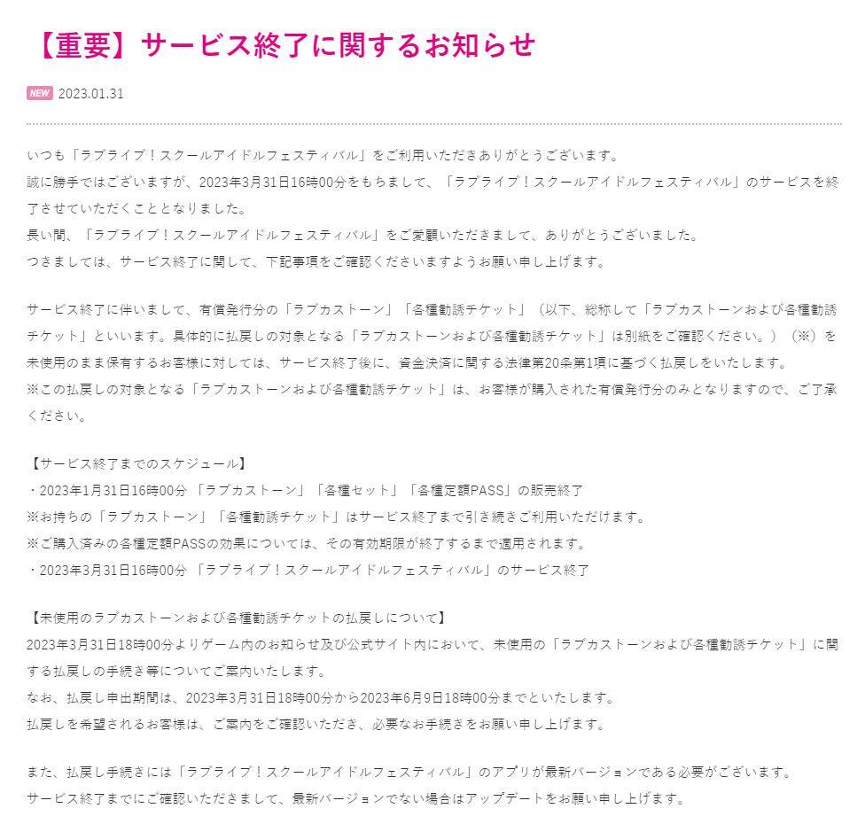 手游《Love Live!学园偶像祭》日服与国际服3月31日停服,新作正在开发中