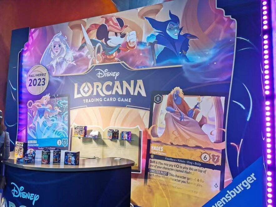 在刚刚举行的Nuremberg Toy Fair 2023会展上,Lorcana参展并在现场透露了补充包实物展示和几张新卡卡图。在现场,由博主Florian Aich拍摄的照片为我们带来了新卡的预览,分别是花木兰、哈迪斯和睡美人。由于现场拍摄并不直观清晰,所以在官方正式公布后我应该还会再重新翻译一遍,可以将本帖视为先行帖。