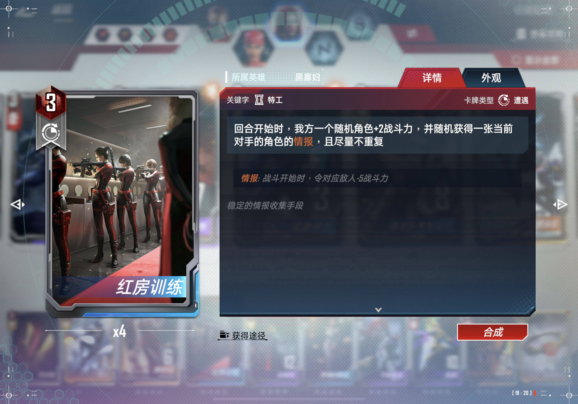 额为什么要特地拿出来讲,是因为前几天看到说不是情报刀就不用带。我不能认可,就算春寡能发现红房训练,很多时候你都会随机不到,就算是在五回合前,也需要根据战局去拿舞会保证自己血量,我们是五回合后发力阵容,但是不代表就要挨打五回合,能连胜我为什么一定要四败呢?我们是上分,不是走钢丝去测试四败技能强度。而且红方训练除了能拿情报削减对方,也能给自身阵容加一定身材,虽然微乎其微。前期抓一张意思一下就可以了,前外不要多抓!