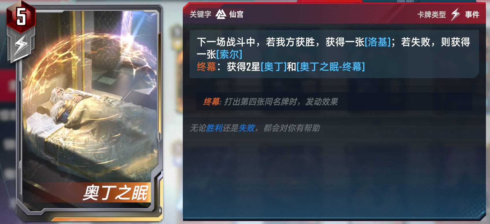 奥丁之眠曾经能获得索尔&奥丁二选一,在改成洛基后前三张的效果都不那么优秀,更多是冲着第四张的二星奥丁和坚甲奥丁去的。因此最大的问题就是这是一张需要大概率浪费15块的卡。