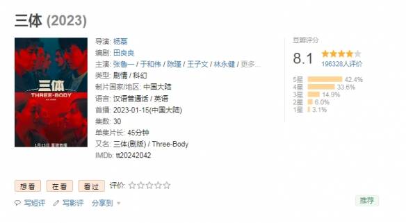 本剧很快就将上映,不过官方并没有公布演员阵容和剧照,不确定是否还是于和伟出演。同时在昨晚,《三体》电视剧已经在腾讯视频上线了超前点播,18元购买点映礼包,可提前观看22-30集大结局。感兴趣的观众也可以了解一下。