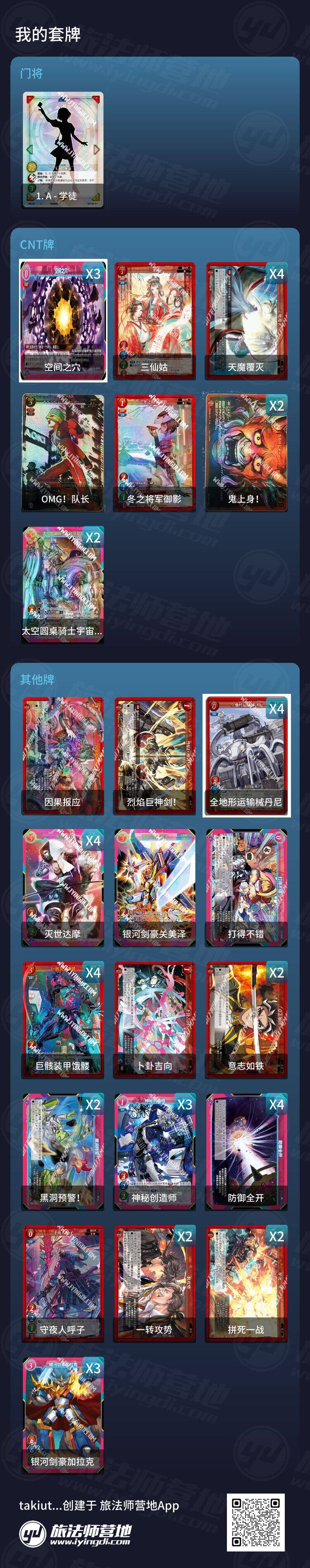卡组主要思路是12张3费大怪为主体,携带防御卡和观顶卡辅助,cnt则是专注于防御和高质量卡,为了节省费用,甚至没有投入千年樱,三仙姑是为了有可能的情况可以防各种奇怪的特招(比如大神器/深渊/创生)甚至提供可能的炸卡翻盘的余地,这种思路下单次学徒驱策的资源是可能超过狂战士的。恶骷在加hp卡帮助下,可以更好的挡住对方的攻击(魂守存在,hp增加效果持续,3次5hp对面很难受的)。比起之前的优化点在于,空间之穴在后场不容易触发所以投入更多点天魔覆灭来防御。烈焰巨神剑除了我没人玩狂战了,除了自由队长外,没有一个警戒能炸,所以换成冬将军来增多一点单位含量。缺点在于没有单位破坏抗性,上次被克苏鲁炸到吐血,以及断怪会特别特别特别特别难受。