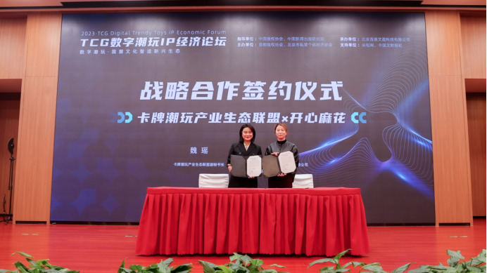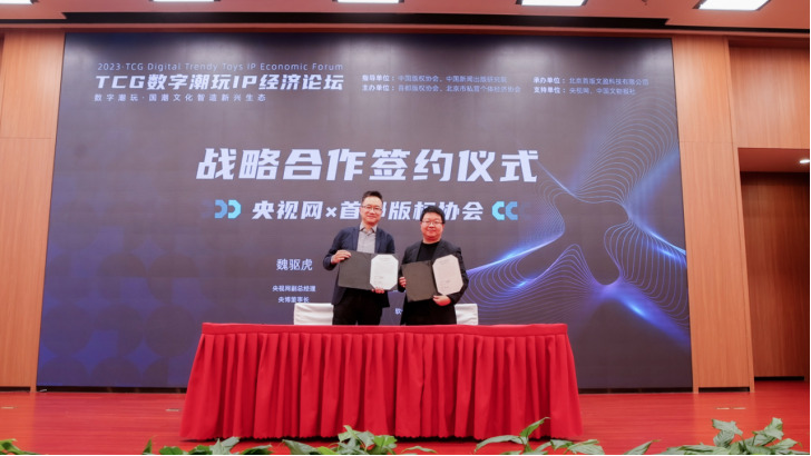 会上,央视网与首都版权协会、开心麻花与卡牌潮玩产业生态联盟签订了战略合作协议,就IP供给侧、衍生品开发、版权保护等领域开展全面合作。