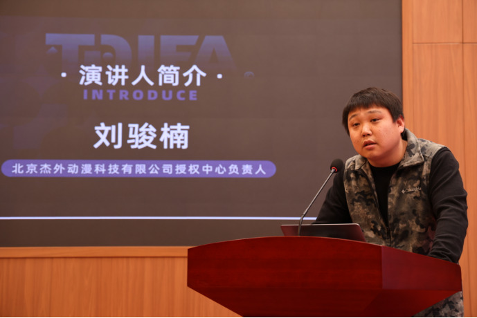 北京杰外动漫科技有限公司授权中心负责人刘骏楠做专项发言