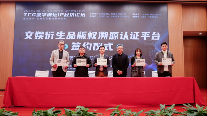 为了让卡牌潮玩产业生态联盟运行机制真正落到实处,首都版权协会北京版权认证中心,建立了一套可追溯、可验证,集版权保护与版权交易信息于一体的文娱衍生品版权认证溯源平台,使正版卡牌和潮玩发行商通过防伪标签的形式对发行的产品进行正版授权的溯源认证。科洛舍(北京)文化发展有限公司、北京若森数字科技股份有限公司、中影年年(北京)文化传媒有限公司、上海隅石文化创意发展有限公司、广州漫游舱网络科技有限公司5家企业成为平台首批入驻企业。