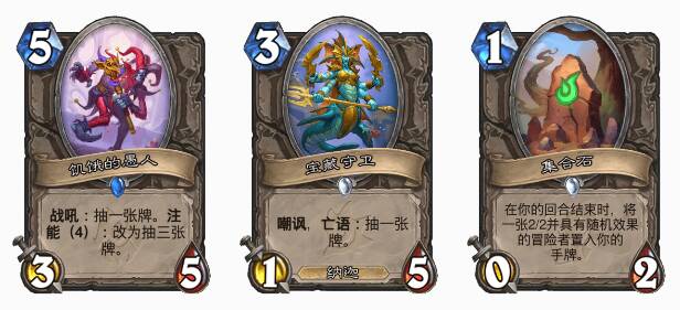 如果职业卡出现率正常,发现特别多,比较看好法师,新环境能打能解,还有死神之躯、符文这种赖皮牌;其后就是骑士和猎人的职业卡比较超模,是快攻的不二之选。