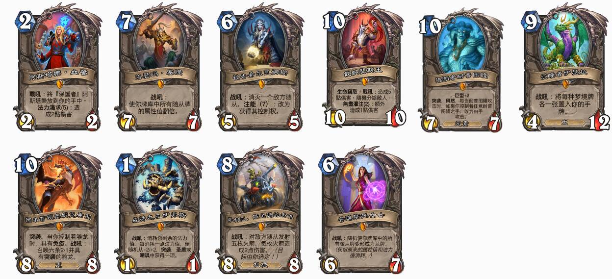 血誓、塞隆、女王、大帝、耐普图隆、伊瑟拉、团本、森林之王、歌莉娅、龙妈。。。没错,这就是我们即将要面对的橙卡大军,这还不包括巨型和其他强力职业橙和高费神卡。