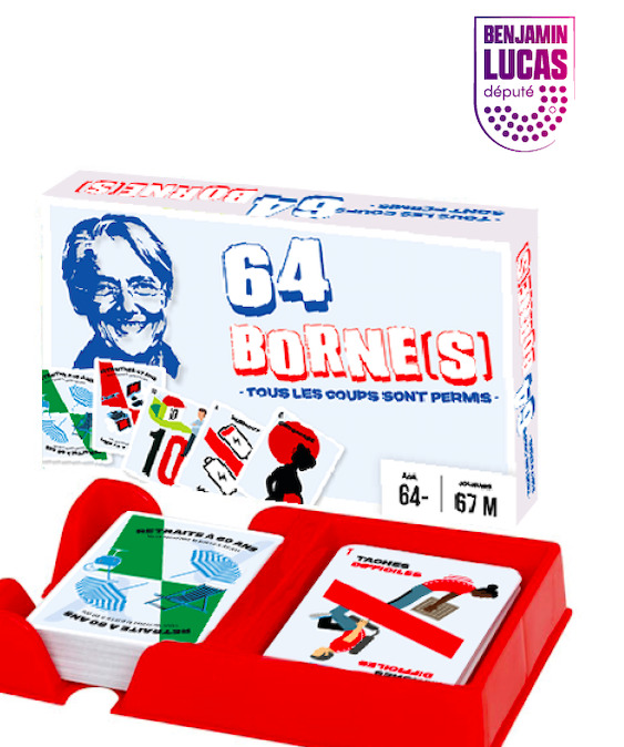 为了反对养老金**,法国国会议员***·卢卡斯(Benjamin Lucas)近日设计了一款桌游,名为《64 Borne(s)》——以法国总理伊丽莎白·伯恩(Elisabeth Borne)的名字命名,游戏的灵感来自1954年的一款老游戏《Mille Bornes》。