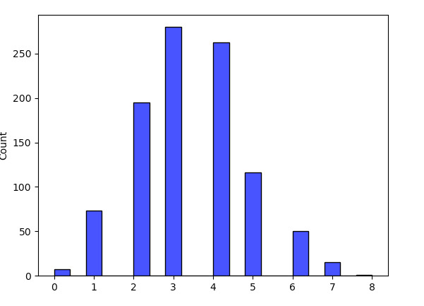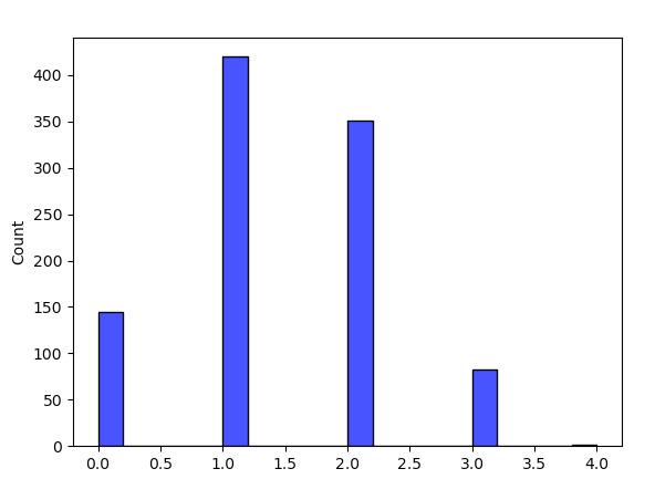 sns.histplot(L,color='blue')