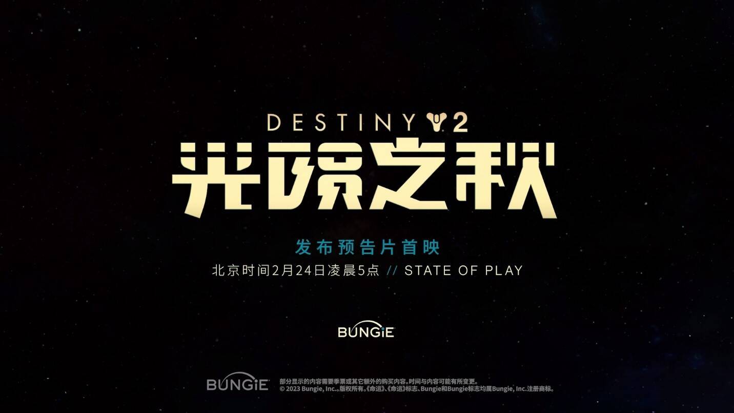 同样,在本周五的北京时间2月24日凌晨5点开始,敬请关注PlayStation的State of Play,来收看《命运2:光陨之秋》的发布预告片。