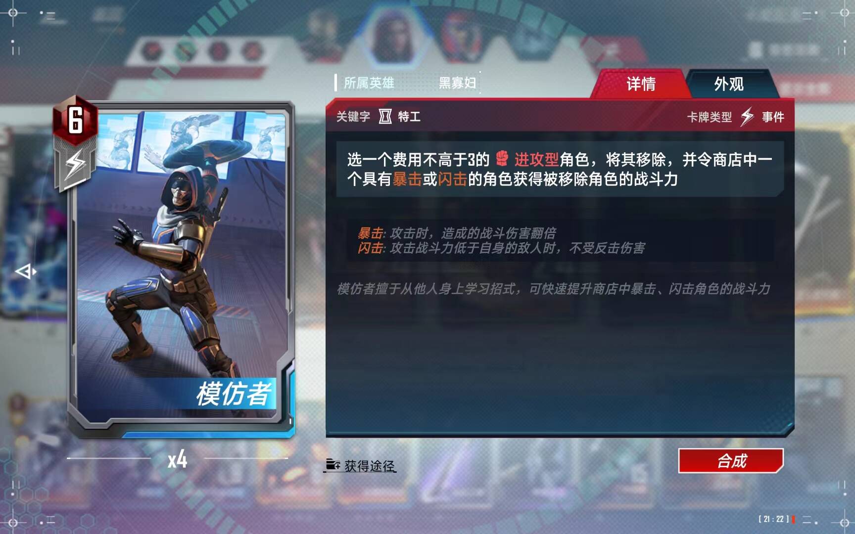 1、升级到六级商店后,主要是扭曲减费、用特工密信来直接获得卤蛋、震荡等卡,如果遇到神盾局的卡也直接买下来。