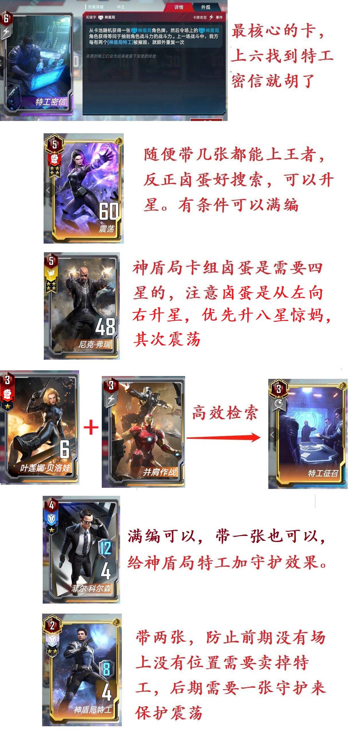 (4)细节5:神盾局特工只留一张一星的再手里就行,上了6本在上场;