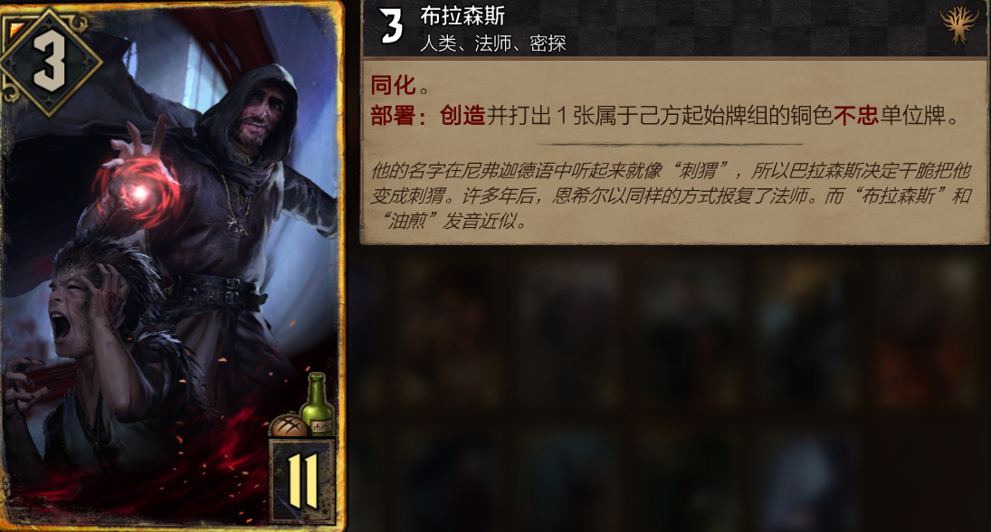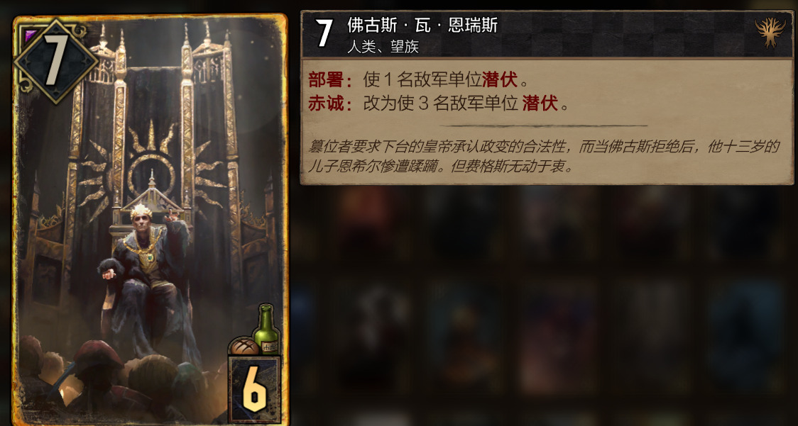 反观恩希尔他爸,在满足赤诚的条件下,无责任的使3个敌方潜伏,这样的高效率不是恩希尔所能实现的,更重要的是,他可以同时选到很多张!!所以有剧情的前提下,没有人会去选择恩希尔,收益太低了。。。
