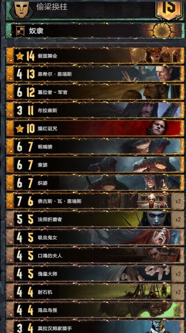贵族与夫人是无愧于争议的好组件,能够触发剧情的同时享受不忠带来的增益,唯一需要注意的是夫人需要先下场拿去送,而贵族哪怕牌局中期或者后期下场,都能有很大的收益。