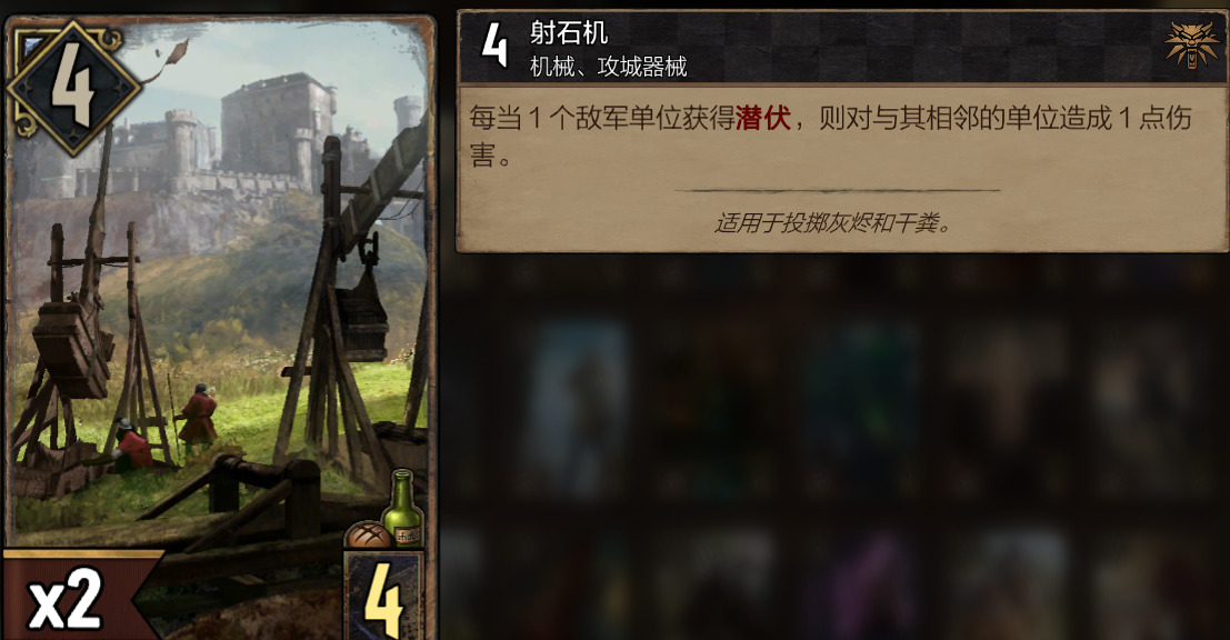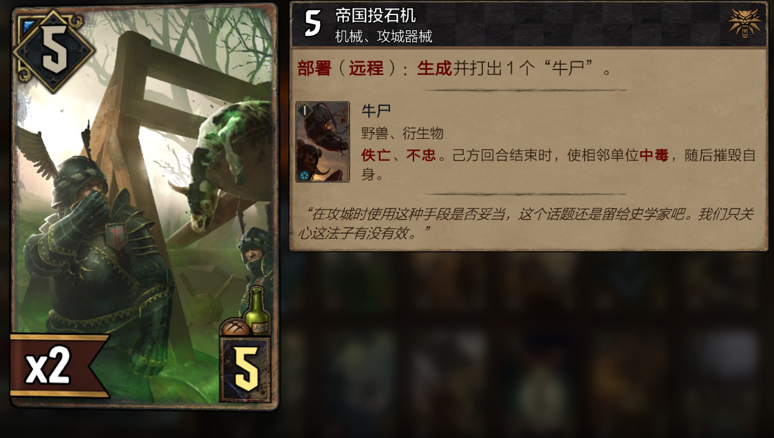 可大家可以观察我的初始卡组,在轮抽初期我并没有拿到煽动贵族,甚至夫人都没有拿到几张,只能退而求其次选择改版后的投石机,怎么说呢?还是有一点点好用,内战肯定是弱爆了,不过我前两轮运气还算很好,拿投石机对抗的分别是北国与怪兽,两个投石机搭配恩希尔他爸,能瞬间解掉对面多个核心组件!!