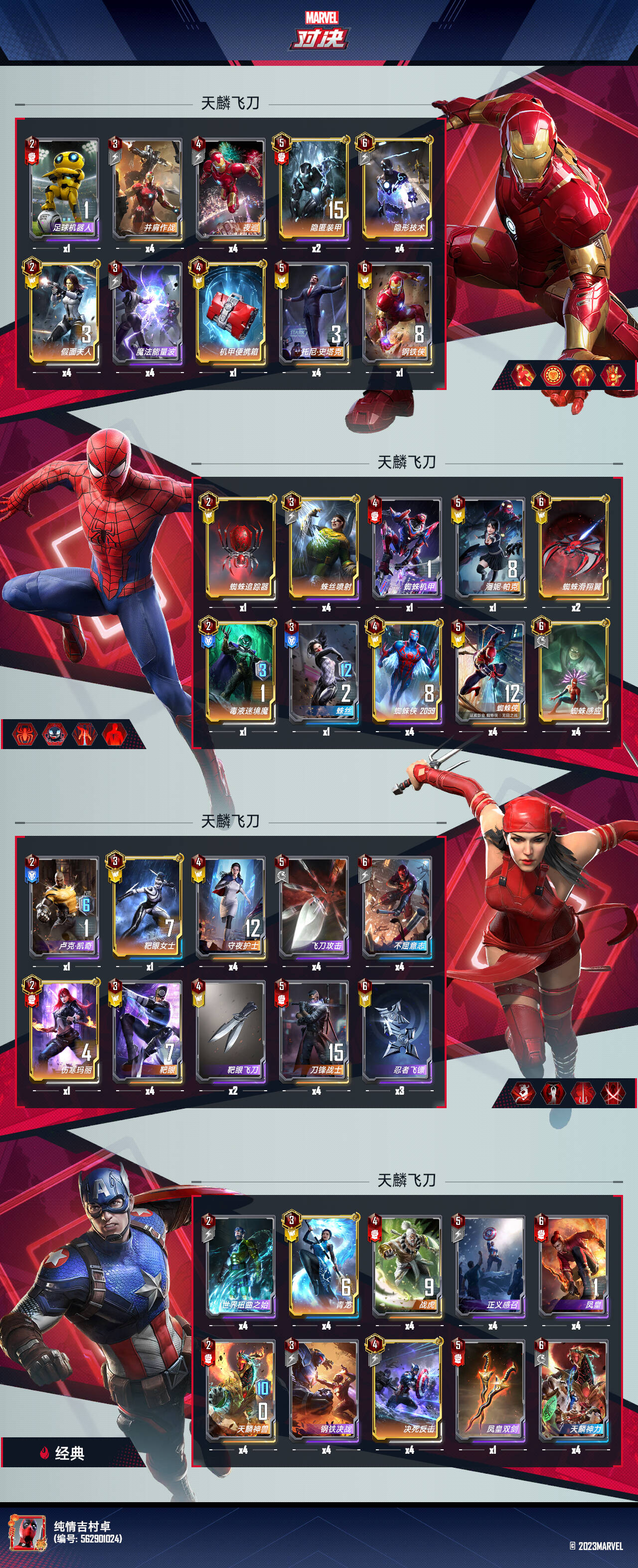 技能不太讲究,基本选4块,由于托尼泛滥,基本4费技能都在艾丽卡和蜘蛛侠之间