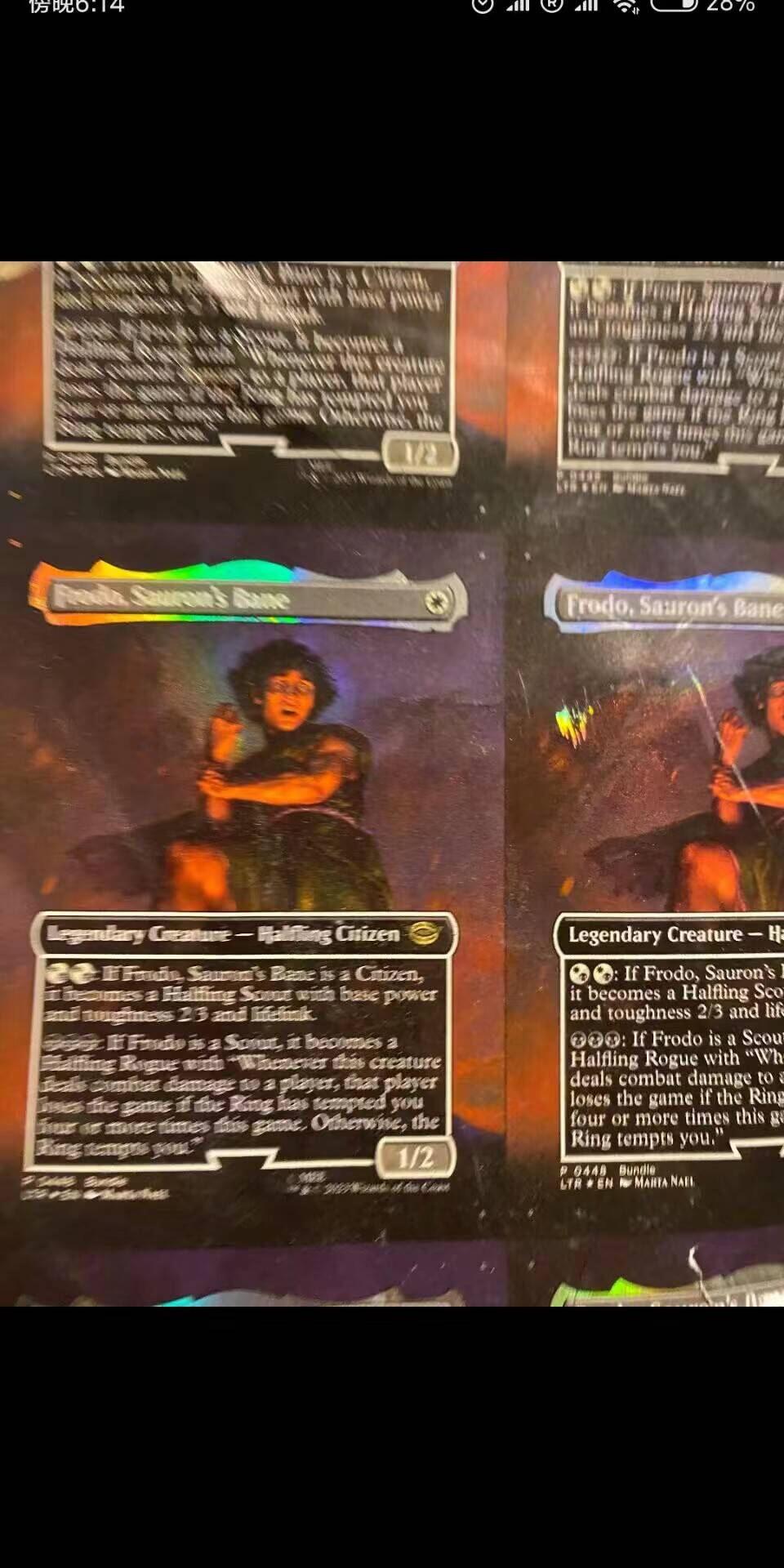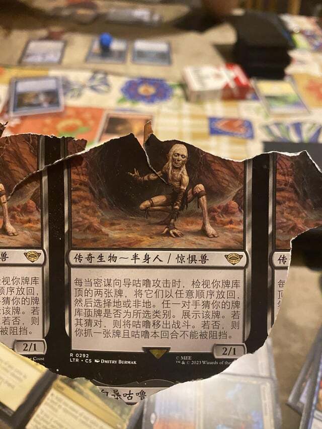BBB:如果~是斥候,则它成为半身人浪客,且具有“每当~对任意牌手造成战斗伤害时,如果魔戒已诱惑你四次,则该牌手输掉此局游戏。否则,魔戒诱惑你。”