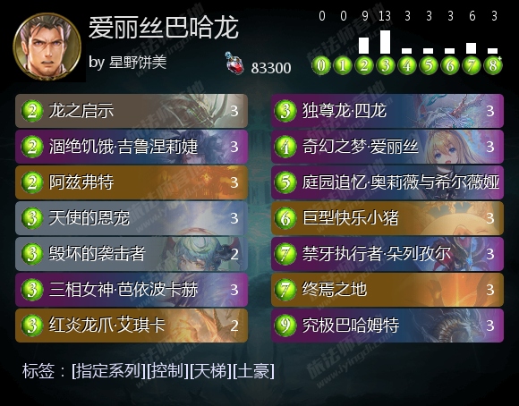 等到环境稳定后,巴哈龙还可根据环境中的常见对手来调整组件,投入闪耀天使、冻雪冰心·菲琳、乌拉诺斯等针对牌。因此,巴哈龙的未来比现在更值得期待。