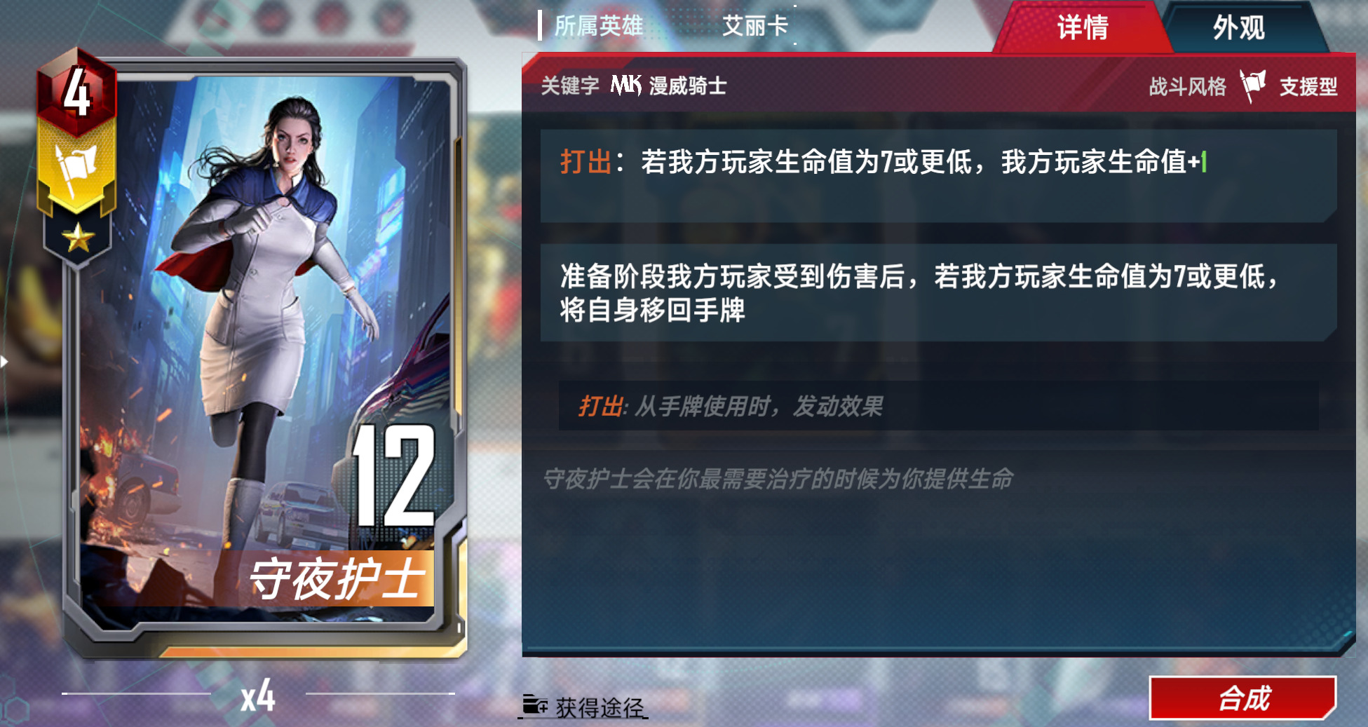 靶眼1/伤寒玛丽1/守夜护士1作为三张加血减血卡,大多数时候都用来配合加血将自己的血量调整为7/14,以最大化飞刀的收益。玛丽只在前两回合2本打出,注意打出玛丽后一定要保证你下回要在三本,也就是说,如果你一回合拿到了玛丽,不管其他是什么牌,都是一定要跳本的。靶眼的强大无需多言,三四回合打出赚一张机枪就已经大大增加了战力,如果留到后期使用,配合控血触发特效,你将可以拿到两张高星级武器,这个可太bug了。至于守夜夫人有一个小技巧,当守夜在场时,你扣血到7或7血以下夫人会回手,我们可以利用这一技巧做到无伤赚钱或者赚卡的效果。